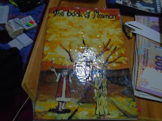 I´m reading like all over the place right now! I want to read the Book of Mormon again so I will probably get on that! OH MY GOSH I HAVE A LEGIT BOOK OF MORMON RIGHT NOW! That lady that we baptized (Cristina) she paints! I had her paint on my English Book of Mormon! And She painted the tree of life on front, and the prophet Moroni placing the gold plates in the earth on the back of my book! OH ITS SO GOOD! I have to show you all.